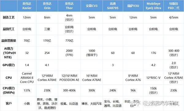 常见自动驾驶芯片对比常见自动驾驶芯片对比常见自动驾驶芯片对比\