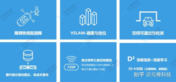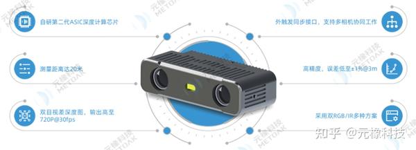 元橡移动机器人视觉产品特色元橡双目产品的的核心技术特点包括小尺寸,可以在短基线(即小尺寸)的基础上来做远距离探测(10厘米基线可探测距离达到200米);高精度,30米内能达到约99%的精度;低时延,运用了单行输入、单行计算的核心处理技术,可以做到非常低的一个时延,这个对于移动机器人来说也是非常重要的;低能耗,高精度算法硬件化,能耗降至非常低;多规格多方案,多种尺寸规程,不同视角配置,广泛场景适应,可选智能化方案,直接输出障碍物检测/定位/建图结果,降低用户开发难度。元橡机器人视觉产品元橡针对机器人推出的双目立体视觉产品包括元目S3系列、R3系列等。S3系列相机基于我们自研的双目ASIC深度芯片,尺寸不大但测量距离能够达到20米,3米内误差低至±1%。S3系列相机已经在无人机、无人车和服务机器人上进行了广泛的应用。
