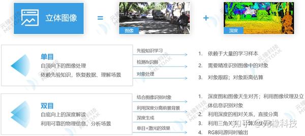 双目立体视觉深度感知在所有的环境感知技术中,双目立体视觉的原理是基于三角测量原理,利用成像设备从不同的位置获取被测物体的两幅图像,通过计算图像对应点间的位置偏差,来获取物体三维几何信息的方法。在移动机器人领域,深度感知是非常重要的。一般来说,单目摄像头也能做一些简单的深度感知处理,通过获取大量的数据进行学习训练,基于先验知识去判断这个物体距离有多远,但不足之处就在于它不能穷举数据集,总会遇到一些没有学习训练过的一些物体,这样的话就很难去做感知。这是单目的先天性局限。而双目是基于数学测量方式,就像我们人眼一样,我们走到任何一个地方,不需要知道这个地方有什么东西,也可以判断它的距离有多远。双目立体视觉不需要大量的先验学习,它利用可靠的物理信息分析场景,得到很详细的信息数据。