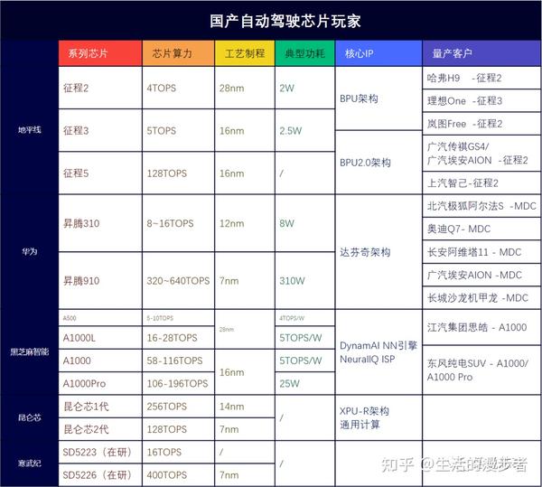 其中不乏实力强劲的Mobileye, 英伟达,高通等企业,利用自身在人工智能和图像处理领域的积累,快速获得了头部势力的信赖和深度合作。2022年同时还是国产大算力芯片的量产元年,今天我们就换个角度,不谈技术,从“产品规划”,“产品落地”两个方面简单介绍一下活跃在自动驾驶领域的这些“中国芯”。今天参与横评的企业主要是有成熟产品,或者量产落地项目的,主要包括但不仅限于:地平线征程系列,华为昇腾系列,黑芝麻华山系列;