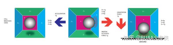 加速度计的模型非常简单,假设真空环境下有一个球放在一个盒中,并且给盒子内壁都安装压敏传感器。在不受外力情况下圆球自然漂浮在盒子中央。当存在加速度时,由于惯性作用,球自然会撞在内壁上,其上的压敏传感器反馈的力 F=ma 。