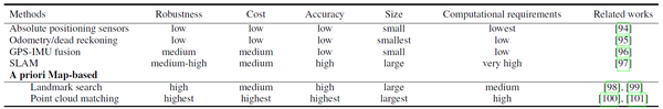不同定位方法之间的对比,From 《A Survey of Autonomous Driving: Common Practices and Emerging Technologies》