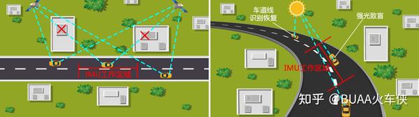 在基于视觉、雷达的定位方法受到外界干扰(如强光照射)而短暂失效的情况下。IMU依然可以稳定发挥作用,确保车辆一段时间内行驶在车道内。