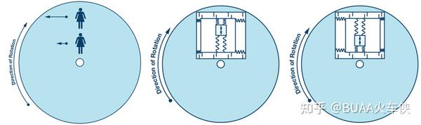 把人换成弹簧振子,当振子往边缘运动的时候,收到向左的一个力;当振子往圆心运动的时候,则会受到向右的一个力。 再把弹簧振子连接上垂直于振动方向的电容和弹簧,就可以把科氏力的作用转化为电容值的变化。