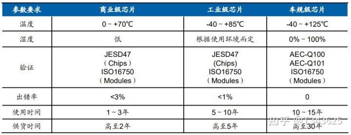 汽车内不同用途的芯片要求也不同,美国制定的汽车电子标准把其分为5级。汽车各系统对芯片要求由高到低依次是:动力安 全系统 > 车身控制系统 > 行驶控制系统 > 通信系统 > 娱乐系统。
