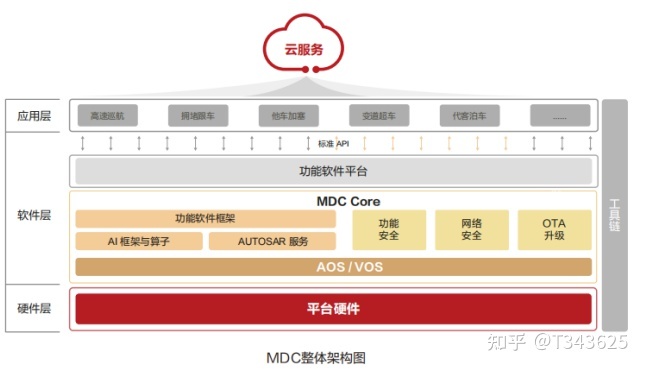 随着ADAS、自动驾驶技术的兴起,以及软件定义汽车的逐步深入,智能汽车对于计算能力和海量数据处理能力等的需求 暴增,传统汽车的芯片“堆叠”方案已经无法满足自动驾驶的算力需求。芯片最终是为车企的车载计算平台服务的,在 “软件定义汽车”的情况下,解决智能驾驶系统计算平台的支撑问题,无法只通过芯片算力堆叠来实现。 芯片是软件的舞台,衡量芯片优劣的标准,要看芯片之上的软件能否最大化地发挥作用,算力和软件之间需要有效匹配。 两款相同算力的芯片比较,能让软件运行得更高效的芯片才是“好芯片”。决定算力真实值最主要因素是内存( SRAM和 DRAM)带宽,还有实际运行频率(即供电电压或温度),以及算法的batch尺寸。 单颗芯片算力TOPS是关键指标,但并非唯一,自动驾驶是一个复杂系统,需要车路云边协同。所以它的较量除了芯还有 软硬协同还有平台以及工具链等等。芯片算力的无限膨胀和硬件预埋不会是未来的趋势,硬件也需要匹配实际。高算力 背后是高功耗和低利用率的问题。