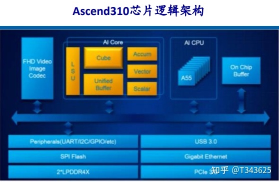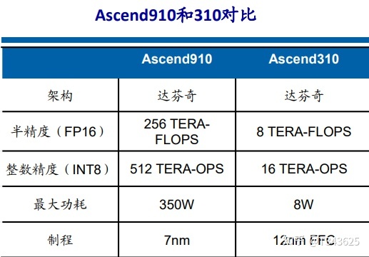 华为 MDC 所采用的Ascend系列芯片,主要有Ascend310和升级版Ascend910两款芯片。 Ascend包括训练和推理芯片,用于训练的Ascend910,半精度(FP16)算力达256TFLOPS,是业界的2倍。用于推理的 Ascend310,整型(INT8)算力16TOPS,功耗仅8W。 作为一款 AI 芯片,Ascend310的一大亮点就是采用了达芬奇架构(Da Vinci)。达芬奇架构采用 3D Cube ,针对矩阵运算做加 速,大幅提升单位功耗下的 AI 算力,每个 AI Core 可以在一个时钟周期内实现 4096 个 MAC 操作,相比传统的 CPU 和 GPU 可 实现数量级的提升。