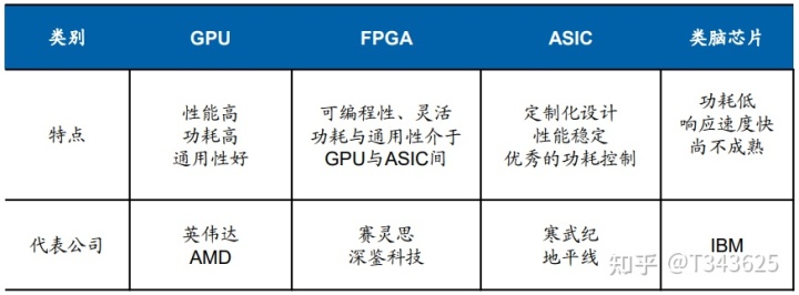 当前主流的AI芯片主要分为三类,GPU、FPGA、ASIC。GPU、FPGA均是前期较为成熟的芯片架构,属于通用型芯片。ASIC 属于为AI特定场景定制的芯片。行业内已经确认CPU不适用于AI计算,但是在AI应用领域也是必不可少。