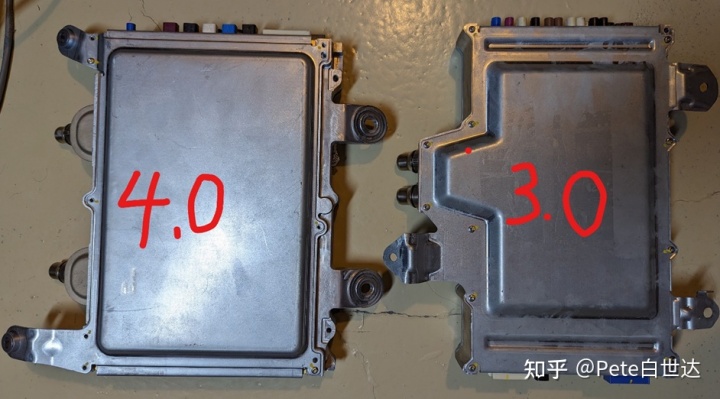 外观对比如下图,HW4.0略大于HW3.0,安装点由3个调整为四个。