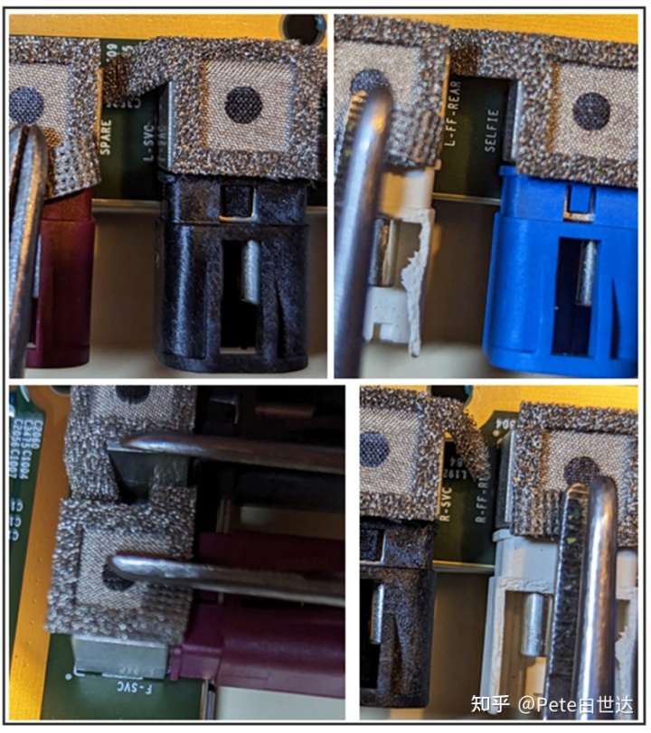根据这几个摄像头接口的标记:F-SVC, L-SVC, R-SVC,推断这几个摄像头会装在前轮上方,或者保险杠的某个位置,可能主要为了解决横穿盲区问题,如下图。