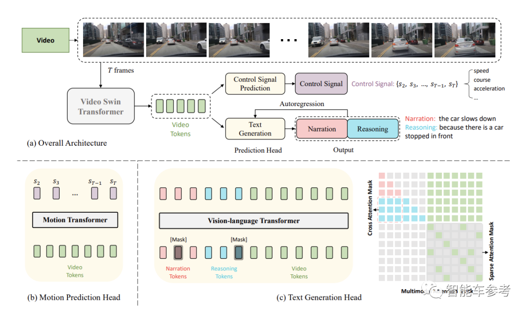 在DCG模块,算法利用Vision-Language Transformer生成两个自然语句,也就是上文中提到的车辆行为描述和原因解释。