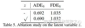论文还消融了添加到多模态条件解码器输入的潜在变量z。它是从维度设置为2的多元正态分布中采样的。但是,如表5所示,论文发现插入z只会带来细微性能提升(小于0.5厘米)。