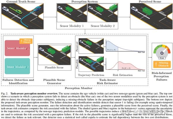 本文提出了一个框架用于评估感知失效对无人驾驶车辆运动规划造成的风险。我们首先识别感知失效模式,接着为当前场景合成合理的替代场景,然后评估无人驾驶车辆在合理的替代场景中面临的风险比感知到的场景中面临的风险高多少。我们将任务感知风险形式化为p-quantile相对场景风险,然后开发一种使用i.i.d.样本估计它的算法。此外,我们为风险估计提供PAC边界,这确保本文算法大概率具有正确性。最后,对本文方法的实验评估表明,本文的检测器在准确率、召回率、精度和F1分数方面优于基准。
