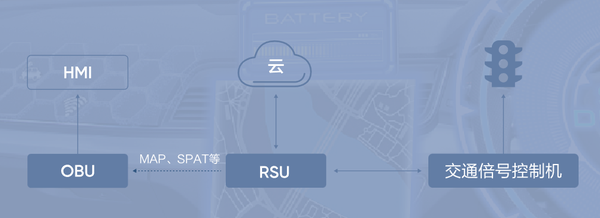 OBU(车载单元)与RSU(路侧单元)交换SPAT信息(信号灯相位与时序消息)
