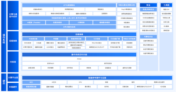 智路OS以开源开放为首要前提,由系统软件平台和功能软件平台共同构成了完整的操作系统布局,为行业提供了统一的车路协同开发环境。其中,系统软件平台自下而上分别由内核层、硬件抽象层、中间件层三部分组成,面向智能网联、高级别自动驾驶和交通数字化管理等全场景,构建起统一的数据和技术底座,以打破应用生态孤岛,支撑起丰富的上层应用。得益于整体架构设计,智路OS在技术上实现了协同性、高性能、智能化、开放性、兼容性、安全性六大特性。