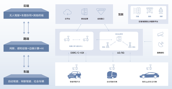 通信:车与车之间通过LTE-V2X通信;车与路之间通过4G/5G或者C-V2X通信;路与云之间可实现有线/无线两种通信方式;最后,车与云之间可通过4G/5G通信。各种通信技术打通“车-路-云”信息交互通道,实现关键信息传输。