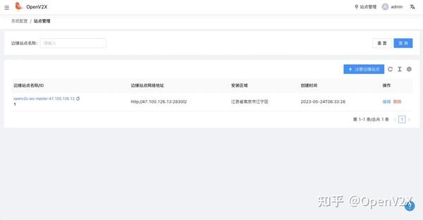 OpenV2X 提供了多边缘站点管理功能,部署好边缘站点后,可通过边缘站点注册功能,将边缘站点与中心连接。在 Omega 界面切换站点,可管理不同站点的设备及事件。