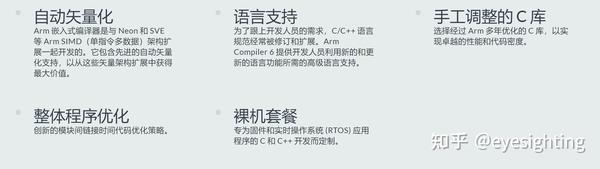 Arm Neon 是适用于 Arm Cortex-A 和 Arm Cortex-R 系列处理器的高级单指令多数据 (SIMD) 架构扩展,其功能可极大改善移动设备上的使用案例,例如多媒体编码/解码、用户界面、2D/3D 图形和游戏。Neon 还可以加速信号处理算法和功能,以加快音频和视频处理、语音和面部识别、计算机视觉和深度学习等应用的速度。Neon 指令最多允许:16×8 位、8×16 位、4×32 位、2×64 位整数运算;8×16位、4×32位、2×64位浮点运算。