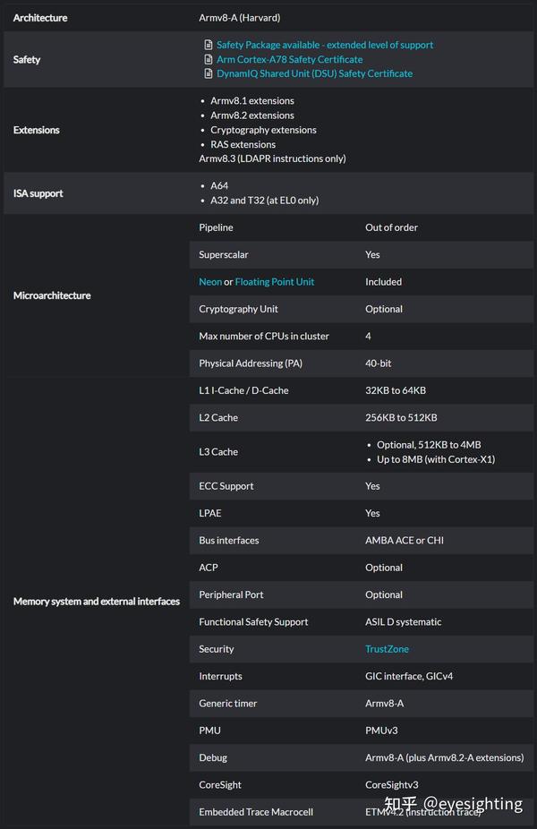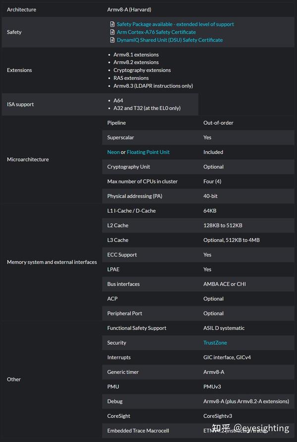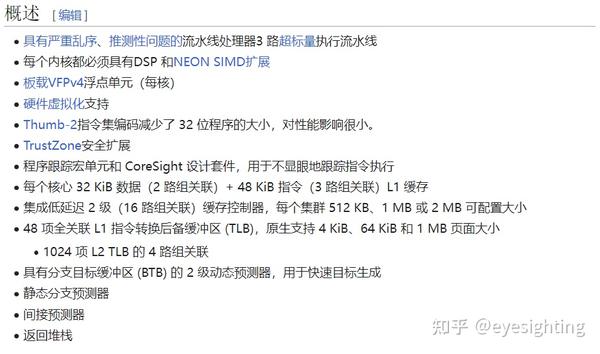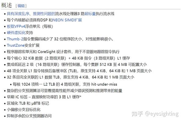 该内核支持非特权32位应用程序,但特权应用程序必须使用64位ARMv8-A ISA。[4]它还支持加载获取 (LDAPR) 指令 ( ARMv8.3-A )、点积指令 ( ARMv8.4-A )、PSTATE 推测存储绕过安全 (SSBS) 位和推测屏障 (CSDB、SSBB、PSSBB) 指令 ( ARMv8.5-A )。
