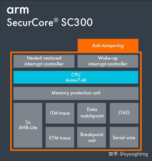 专为高性能嵌入式安全应用而设计:Arm SecurCore 处理器具有防篡改功能。SC300 嵌入了针对侧通道攻击和故障注入的对策。