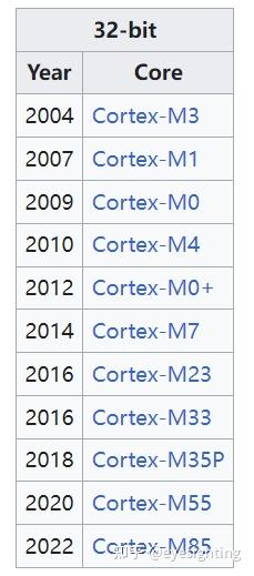 Cortex-M:https://en.wikipedia.org/wiki/ARM_Cortex-M