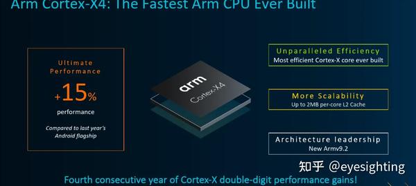 ARM Cortex-X4是Arm的CPU 核心模型。它在 TCS23 中推出,作为ARM Cortex-X3的后继产品,X 系列 CPU 内核通常注重高性能,并且可以与该系列中的其他内核(如ARM Cortex-A720或/和ARM Cortex-A520)在集群中配对。