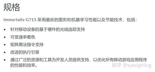 释放游戏性能:Immortalis-G715 是 Arm 全新旗舰 GPU,旨在为下一代旗舰智能手机提供极致游戏体验。它是首款在移动设备上提供基于硬件的光线追踪支持的 Arm GPU,将 Android 上的移动游戏推向了一个全新的水平。