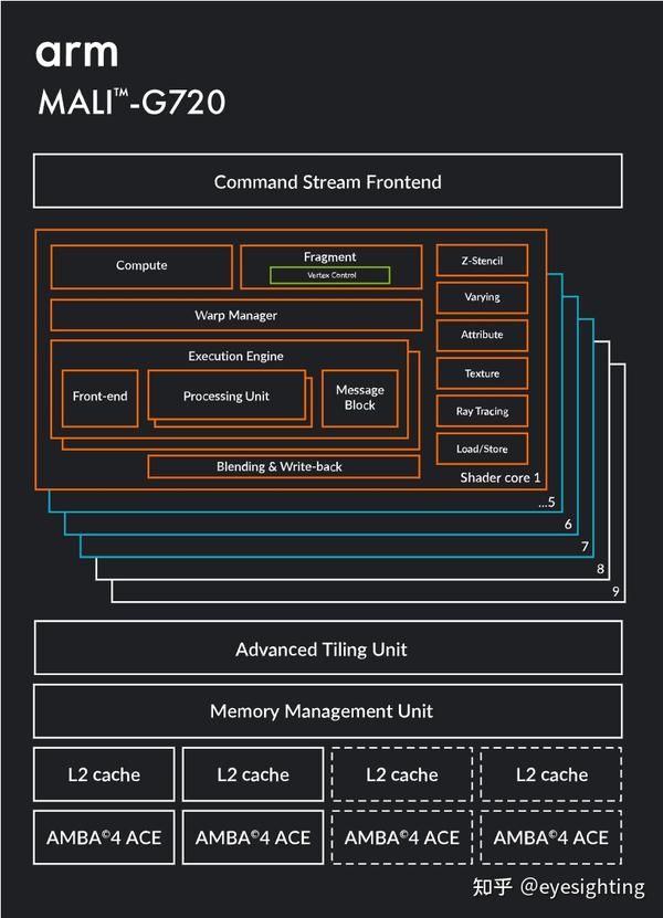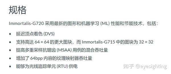 Mail的下一代视觉计算:Mali-G720 采用 Arm 第五代架构设计,可提高性能,同时降低内存带宽使用、功耗和 CPU 负载。Mali-G715 GPU 比其前身更强大,充分利用先进的 GPU 技术,可以为各种设备上的沉浸式游戏和智能 AI 应用程序提供支持。