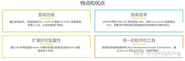 边缘和端点设备的人工智能创新:利用 Arm Ethos-U microNPU 系列的最新成员,在各种嵌入式设备中构建低成本、高效的 AI 解决方案。Ethos-U65 保持了 Arm Ethos-U55 的功效,同时将其适用性扩展到基于 Arm Cortex-A、Cortex-R 和 Neoverse 的系统,同时提供两倍的设备上机器学习 (ML) 性能。