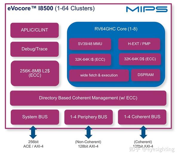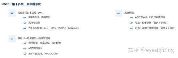I8500 是一款有序多处理系统,具有一流的功效,适用于 SoC 应用。每个 I8500 内核都结合了多线程和高效的三重管道,可提供出色的计算吞吐量。该解决方案可扩展至 64 个集群、512 个核心和 2,048 个 HART/线程。