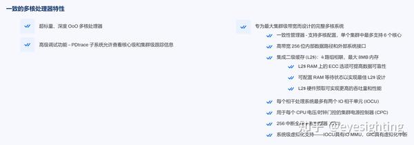 MIPS 的新型eVocore RISC-V CPU克服了这一挑战,通过独特的技术组合提供这些系统所需的高性能、效率和安全性组合。在 eVocore CPU 中,多线程提高了性能效率,一致的结构优化了向不同计算引擎的数据移动,多集群支持提供了高水平的系统可扩展性。