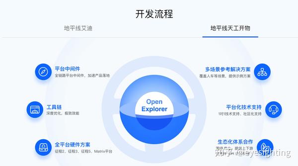 地平线天工开物:基于地平线自研智能芯片打造的全生命周期软件开发平台,包括模型仓库、芯片工具链和应用开发中间件三大功能模块,为地平线芯片合作伙伴提供丰富的算法资源、灵活高效的开发工具和简单易用的开发框架。