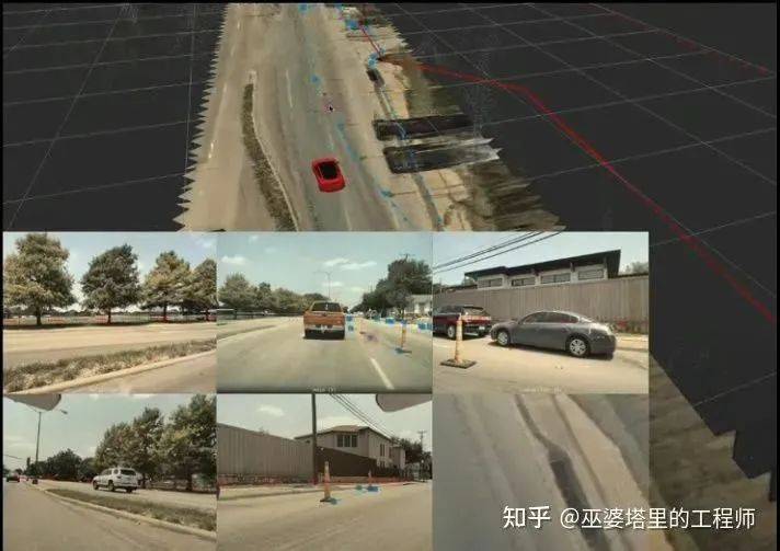 既然是深度学习算法,那么数据和标注自然就是关键环节。图像空间中的标注非常直观,但是系统最终需要的是在向量空间中的标注。Tesla的做法是利用来自多个摄像头的图像重建3D场景,并在3D场景下进行标注。标注者只需要在3D场景中进行一次标注,就可以实时的看到标注结果在各个图像中的映射,从而进行相应的调整。