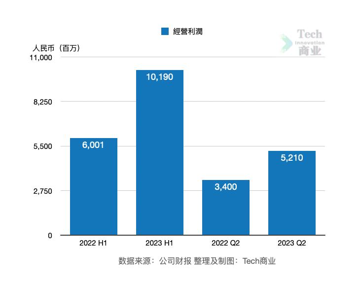 上半年该公司经营利润为102亿元,同比2022财年上半年的60亿元,本期利润增幅达70%。