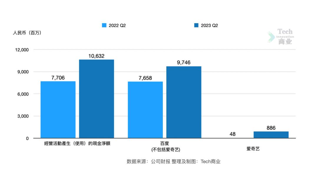 其中来自百度(不包括爱奇艺)的经营活动现金净流入额为97亿元,同比增幅为27%。
