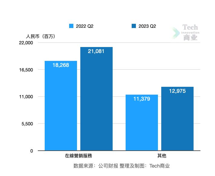 该公司本季度来自在线营销服务的收入为211亿元,同比上一财年Q2的183亿元,增长15%。