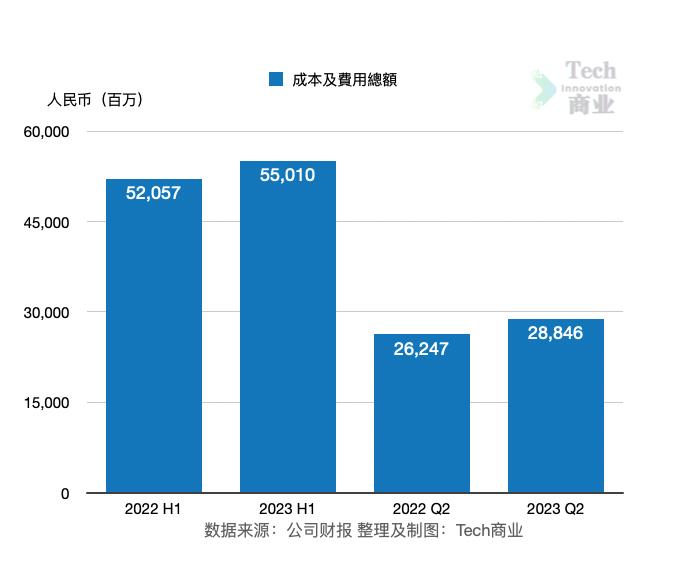 费用成本方面,该公司Q2成本及费用总额为288亿元,同比上一财年同期的262亿元,该项总额增幅为10%。