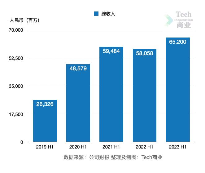 根据财报,百度2023财年上半年总收入为652亿元,该公司2019年财年至2022年上半年收入分别为263亿、486亿、595亿、581亿,本期收入同比为近五个财年最高。