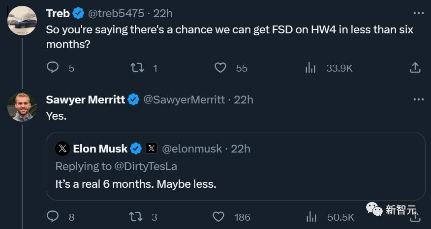 马斯克在推特上称,V12可能将在不到半年的时间内更新上线!