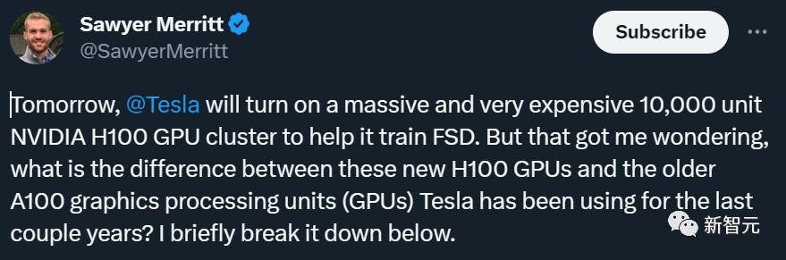 根据特斯拉爆料人士Sawyer Merritt爆料,特斯拉将于美国时间本周一上线备受期待的,由1万片H100组成的超级计算机。