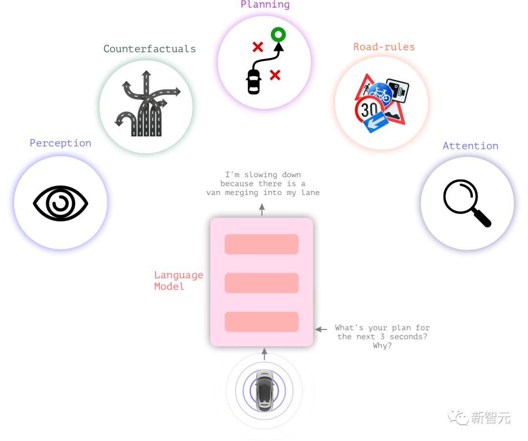 通过用语言来解释驾驶场景中的各种因果因素,就可以加快模型的训练速度,推广到全新的场景中。