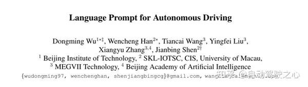 引用:Wu, D., Han, W., Wang, T., Liu, Y., Zhang, X., & Shen, J. (2023). Language Prompt for Autonomous Driving. ArXiv. /abs/2309.04379