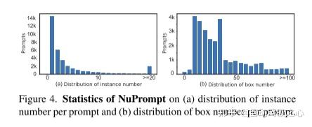 图4。NuPrompt的统计信息:(a)每个提示符的实例数分布和(b)每个提示符的框数分布。