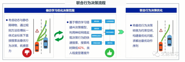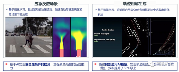 Al决策技术可以基于模块化的方法,通过强化学习来加速自动驾驶系统在紧急场景下的反应,基于模仿学习的决策Al方法可以通过神经网络快速搜索最佳决策行为,提高算法的效率。