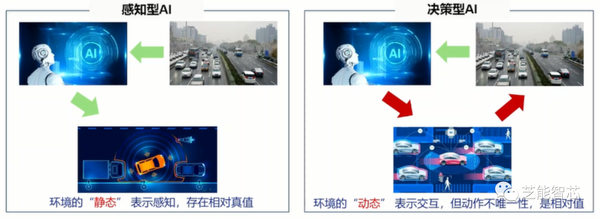 感知型AI主要关注环境的静态表示,而决策型AI需要考虑环境的动态表示和与环境的交互。这种差异增加了决策型AI的工程化难度,但也为人工智能技术在自动驾驶领域的应用提供了新的机遇。