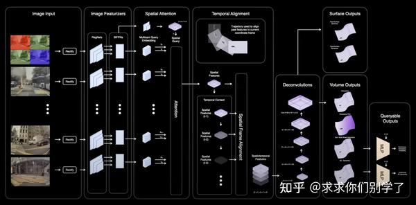 每个体积网格都有特征图。我们使用3D位置查询和MLPs来获得更精细的输出。