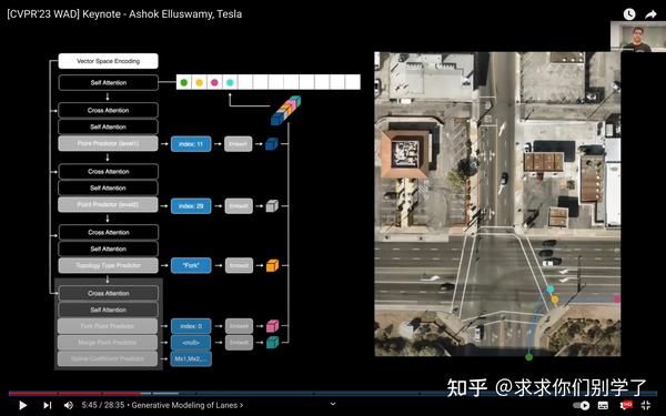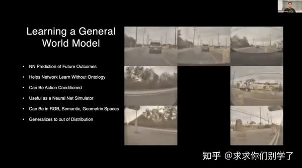 CVPR 2023 Tesla和Wayve展示的所谓World Model。凭借自动驾驶车辆采集的大量实景视频数据,可以利用生成模型去生成未来场景来和真实的未来时刻数据对比,从而构建loss,这样就可以不依赖标注信息对模型进行训练。这个任务非常接近文字接龙,而它最巧妙的地方则在于要想成功预测未来时刻的场景,你必须对现在时刻场景的语义信息以及世界演化的规律有着深刻的了解。