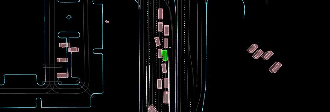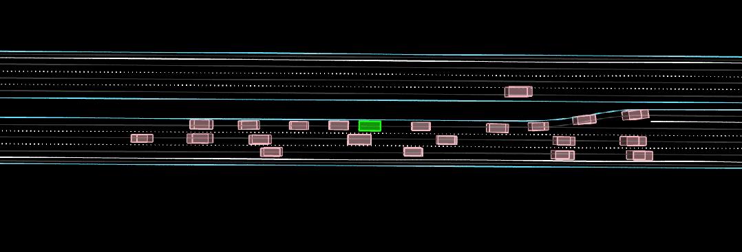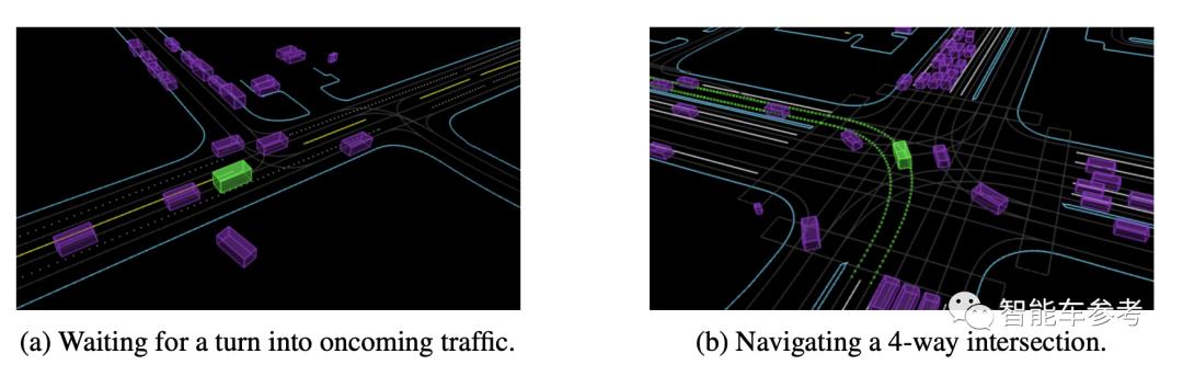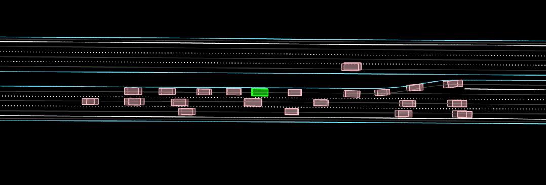 但别看效果图只剩下小方块和实线虚线,实际上这是一个复杂而细致的多智能体环境,能让自动驾驶系统更好学习决策和规划: