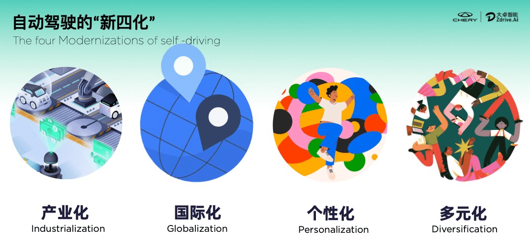 基于对行业未来发展方向和机会的思考,谷俊丽首次提出自动驾驶行业的“新四化”:产业化、国际化、个性化、多元化。