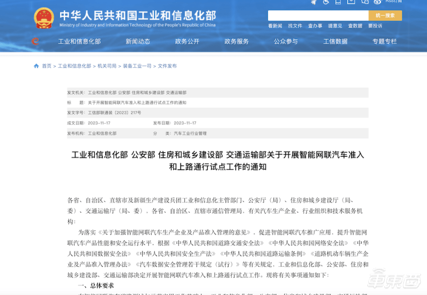 ▲四部门联合发布《关于开展智能网联汽车准入和上路通行试点工作的通知》